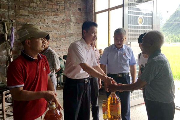韋云忠一行還到相堯村在建的村文化活動中心實(shí)地查看,對村文化活動中心規(guī)劃及集團(tuán)公司幫扶建設(shè)村文化樓等工作表示肯定。韋云忠等領(lǐng)導(dǎo)還分別深入相堯村3戶貧困戶代表進(jìn)行慰問,了解貧困戶生產(chǎn)生活情況。