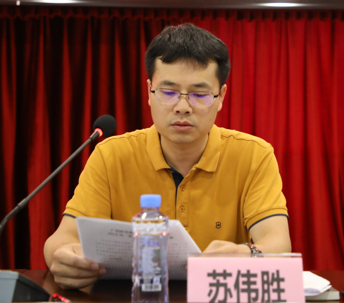 圖4:集團(tuán)副總經(jīng)理蘇偉勝宣讀新發(fā)展集團(tuán)2019年“安全生產(chǎn)月”活動(dòng)方案
