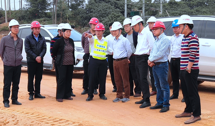 12月23日下午,區(qū)交通運(yùn)輸廳副廳長王劼耘一行到大塘至浦北高速公路項(xiàng)目開展項(xiàng)目建設(shè)檢查指導(dǎo)。自治區(qū)交通運(yùn)輸廳建設(shè)管理處副處長余建國、北投集團(tuán)總工程師覃炳賢、欽州市交通局局長鄒滿麗、靈山縣副縣長陸漢川、新發(fā)展集團(tuán)總經(jīng)理藍(lán)日彥、大浦公司副總經(jīng)理姚雷、中建八局南方公司總經(jīng)理助理龍永強(qiáng)等陪同。